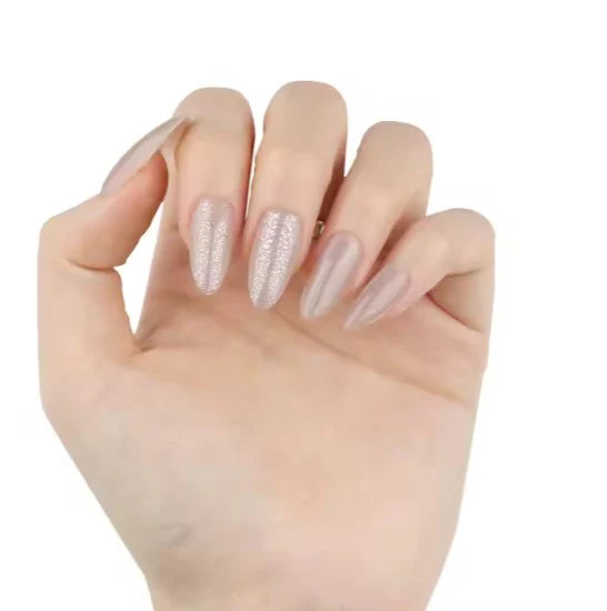 Perfect for everyday glam or special occasions, this set blends understated tones with radiant shine. The flattering almond shape and soft neutral palette make it a must-have for lovers of chic, clean aesthetics with a touch of glow.